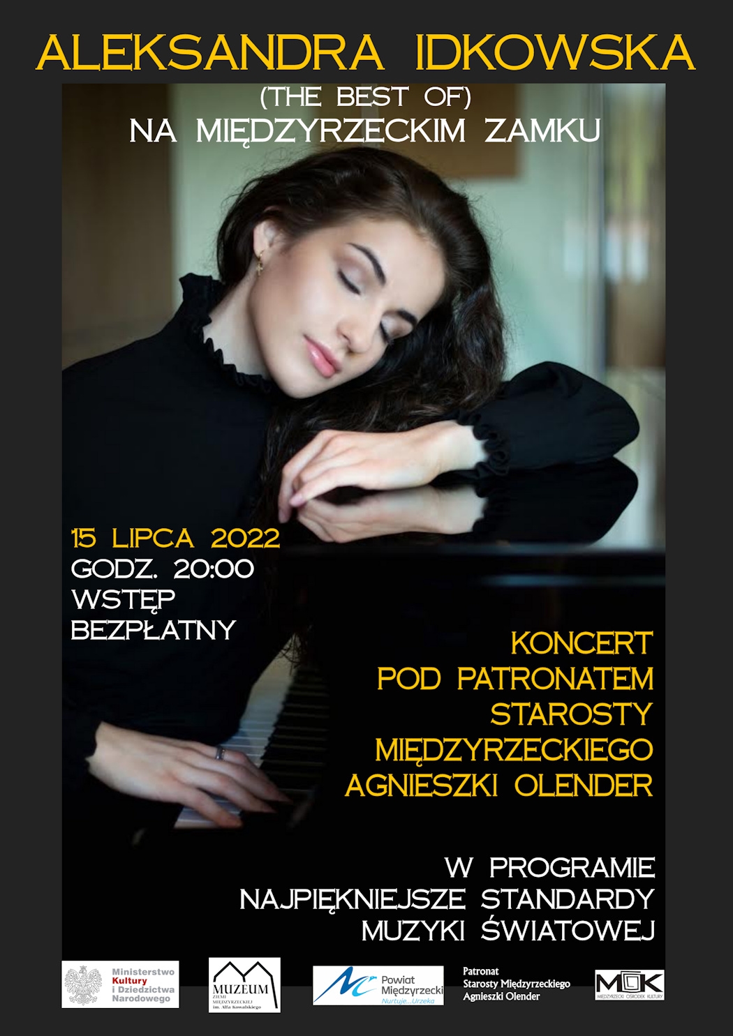 Muzeum Ziemi Międzyrzeckiej, Powiat Międzyrzecki oraz Międzyrzecki Ośrodek Kultury zapraszają na koncert Pod Patronatem Starosty Międzyrzeckiego – Agnieszki Olender – ALEKSANDRA IDKOWSKA ,THE BEST OF
